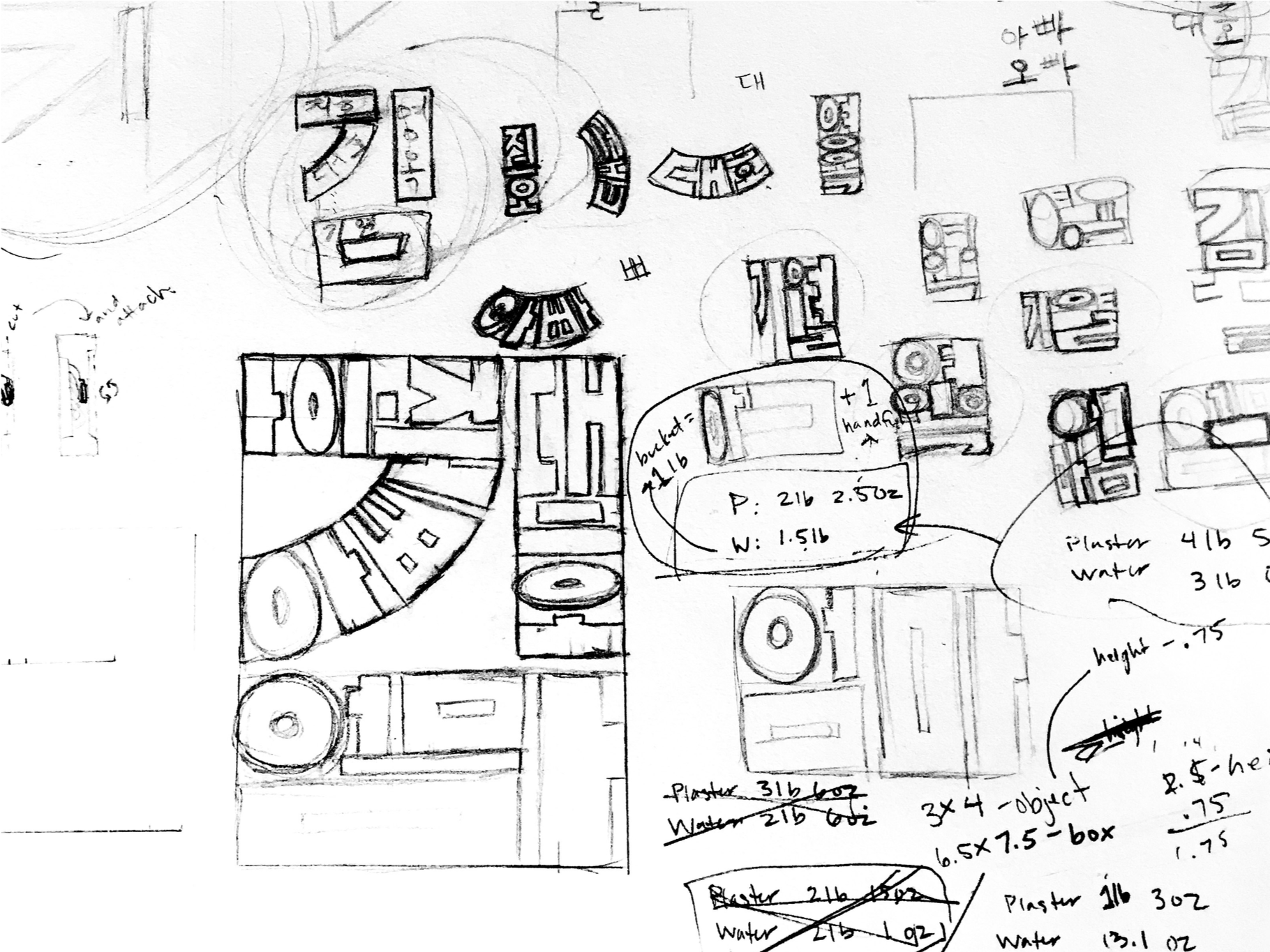 During the feedback session, one comment that stuck with me was that the keychains looked like puzzle pieces. This sparked a new direction that incorporated our Korean names into a complete picture. I landed on a final design where our last name formed the base, with individual names making up the whole picture.