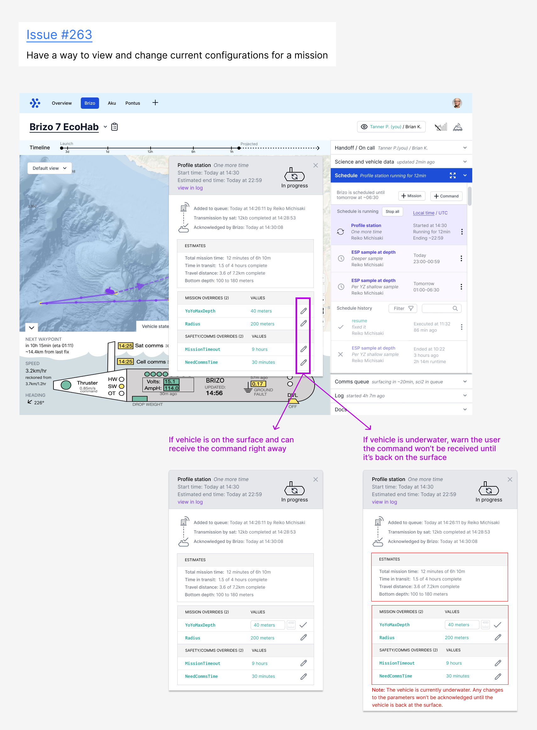The LRAUVs are controlled via an online interface to conduct sensing and sampling missions, but the skill level of users ranged from beginner volunteers and scientists to experienced engineers. Our goal was to create a design that would meet the needs of all the users.